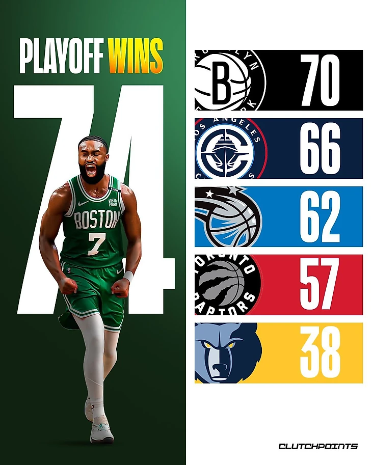 У Джейлена Брауна больше выигранных матчей плей-офф, чем у пяти клубов НБА