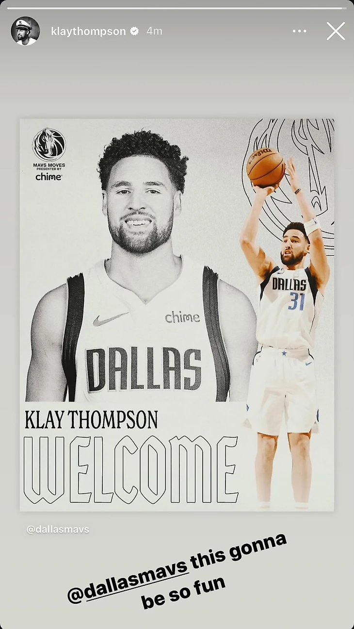 Томпсон выложил картинку официального аккаунта «Мэверикс», посвященную подписанию контракта. Техасский клуб в прошлом сезоне дошел до финала НБА.