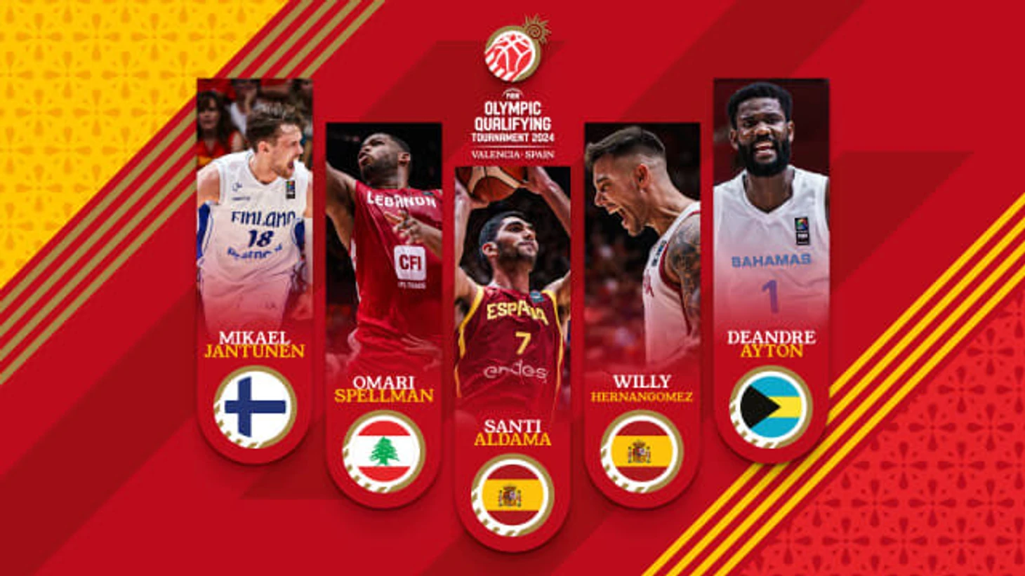 В символическую пятерку вошли: форвард Санти Альдама (Испания), центровой Уилли Эрнангомес (Испания), центровой Деандре Эйтон (Багамские острова), форвард Микаэль Янтунен (Финляндия) и форвард Омари Спеллмен (Ливан).