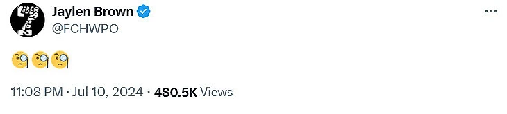 Форвард «Бостона» Джейлен Браун опубликовал загадочное сообщение в соцсети после объявления о том, что его партнер по команде Деррик Уайт заменит Кавая Ленарда в сборной США.