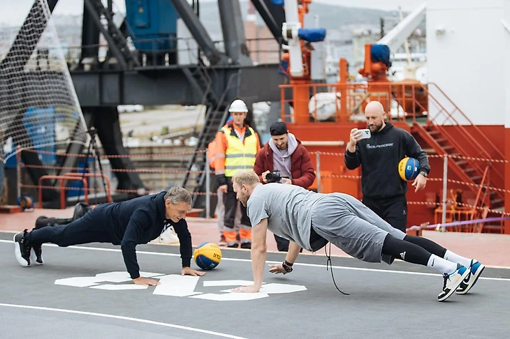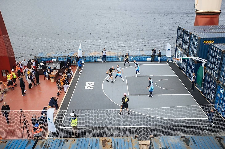 Бронзовые призеры Олимпиады-2012 Евгений Воронов, Сергей Карасев и Антон Понкрашов приняли участие в проекте «Норникеля» и сыграли в баскетбол на арктическом судне «Талнах».