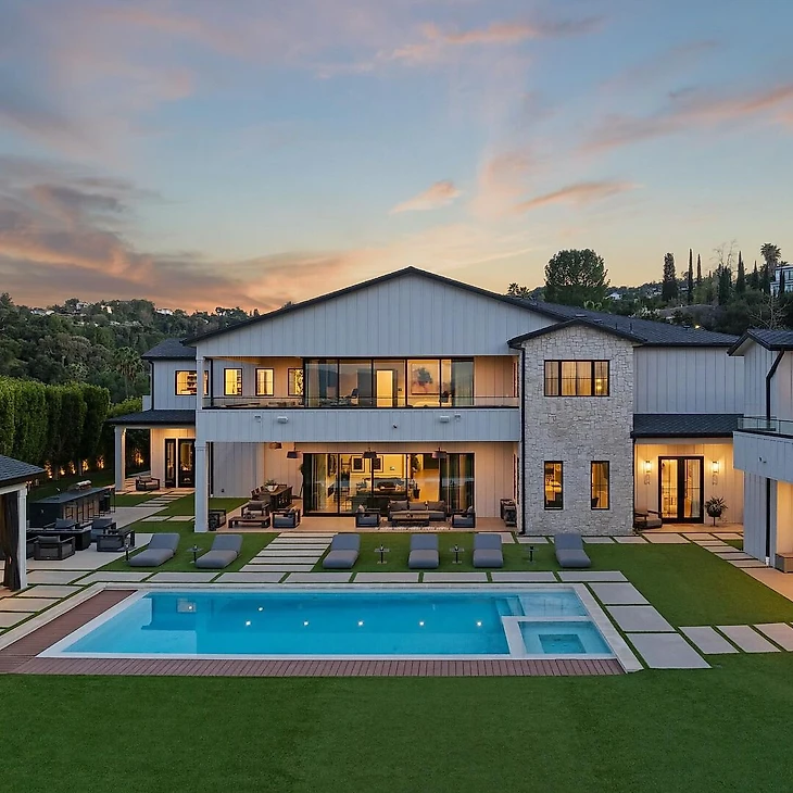 Дом в Энсино, который находится недалеко от Лос-Анджелеса, включает в себя восемь спален, 12 ванных комнат и роскошную кухню. В нем также есть винный погреб, домашний спортзал, домашний кинотеатр, баскетбольная площадка и теннисный корт.