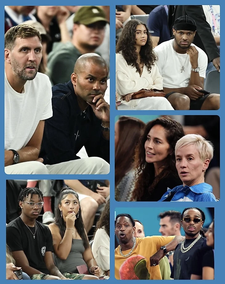 На игре также присутствовали легенды баскетбола Тони Паркер, Дирк Новицки и Сью Берд, футболистка Меган Рапино, музыканты Трэвис Скотт и Quavo.