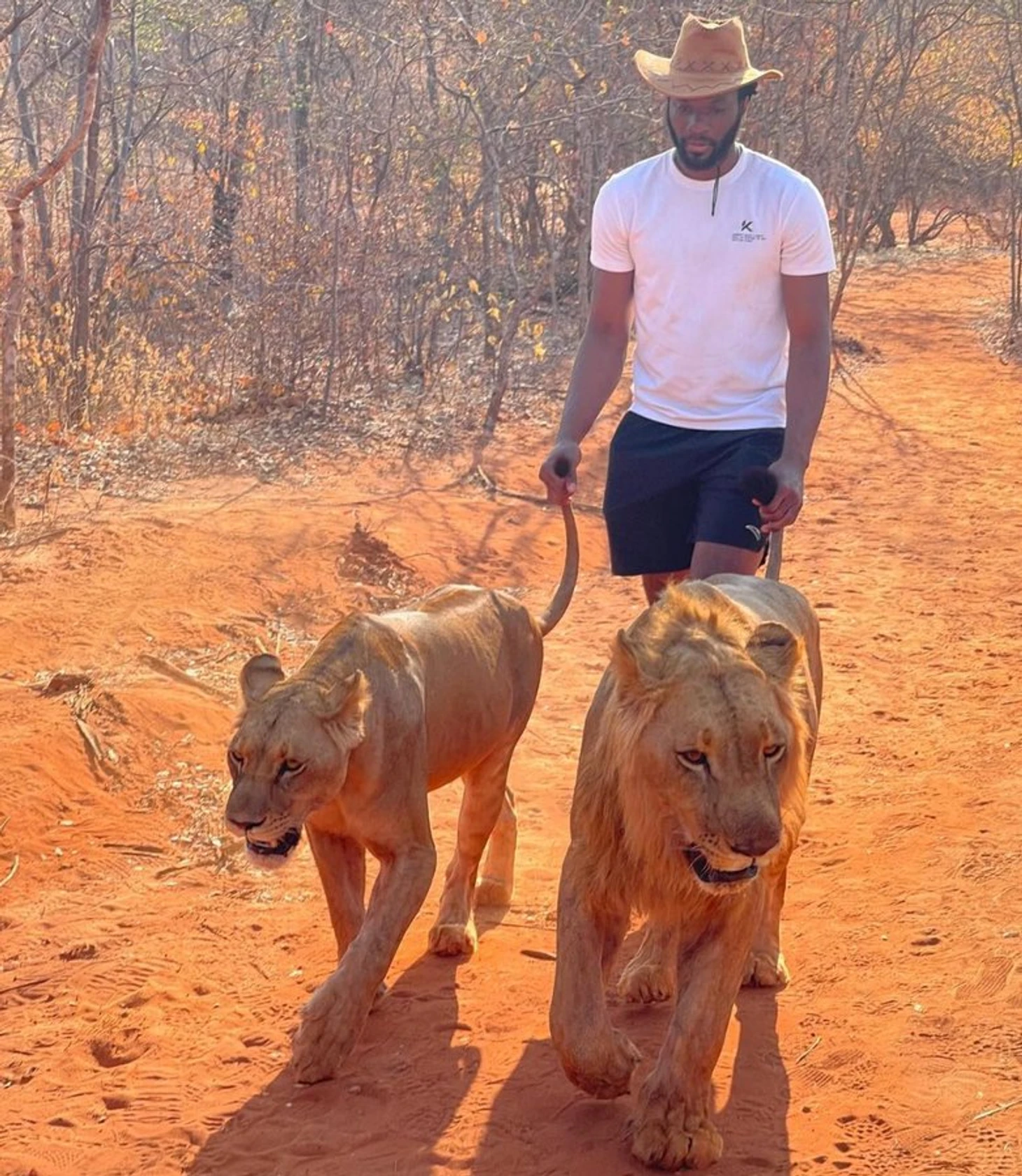 Прешес Ачиува снялся в видео с двумя львами во время посещения Замбии