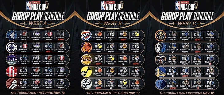 За два месяца до начала сезона-2024/25 НБА опубликовала расписание группового этапа внутрисезонного турнира Emirates NBA Cup.
