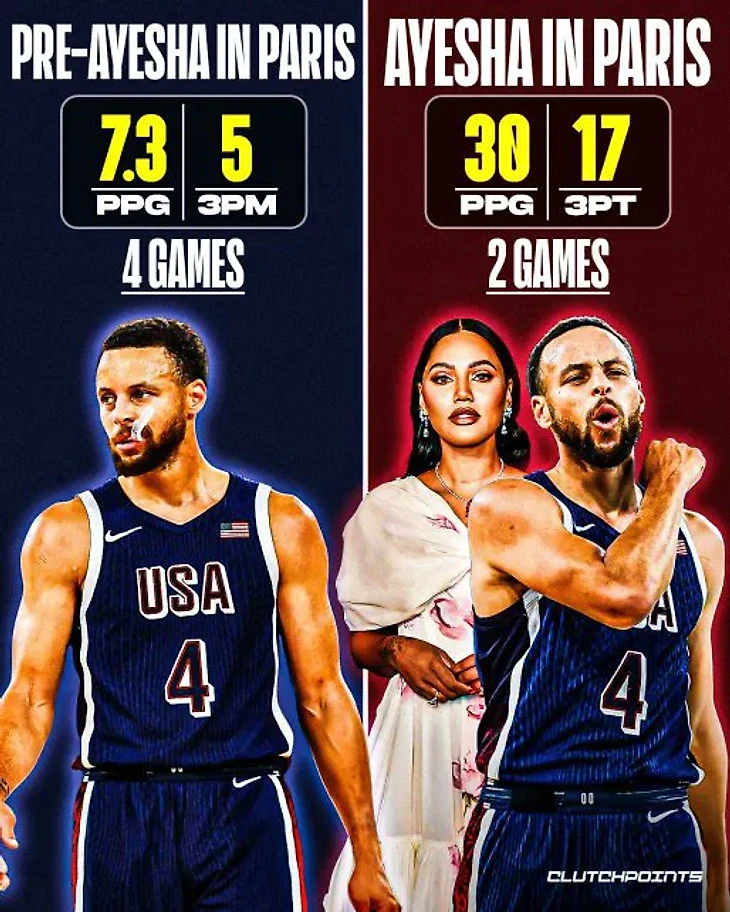 После приезда Айеши на Олимпиаду средняя результативность Стефена Карри выросла с 7 очков до 30