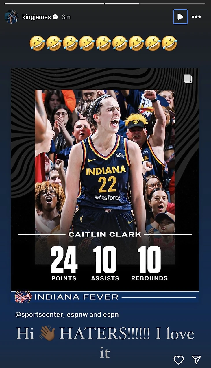 Леброн Джеймс написал недоброжелателям Кейтлин Кларк после трипл-дабла звезды «Индианы»