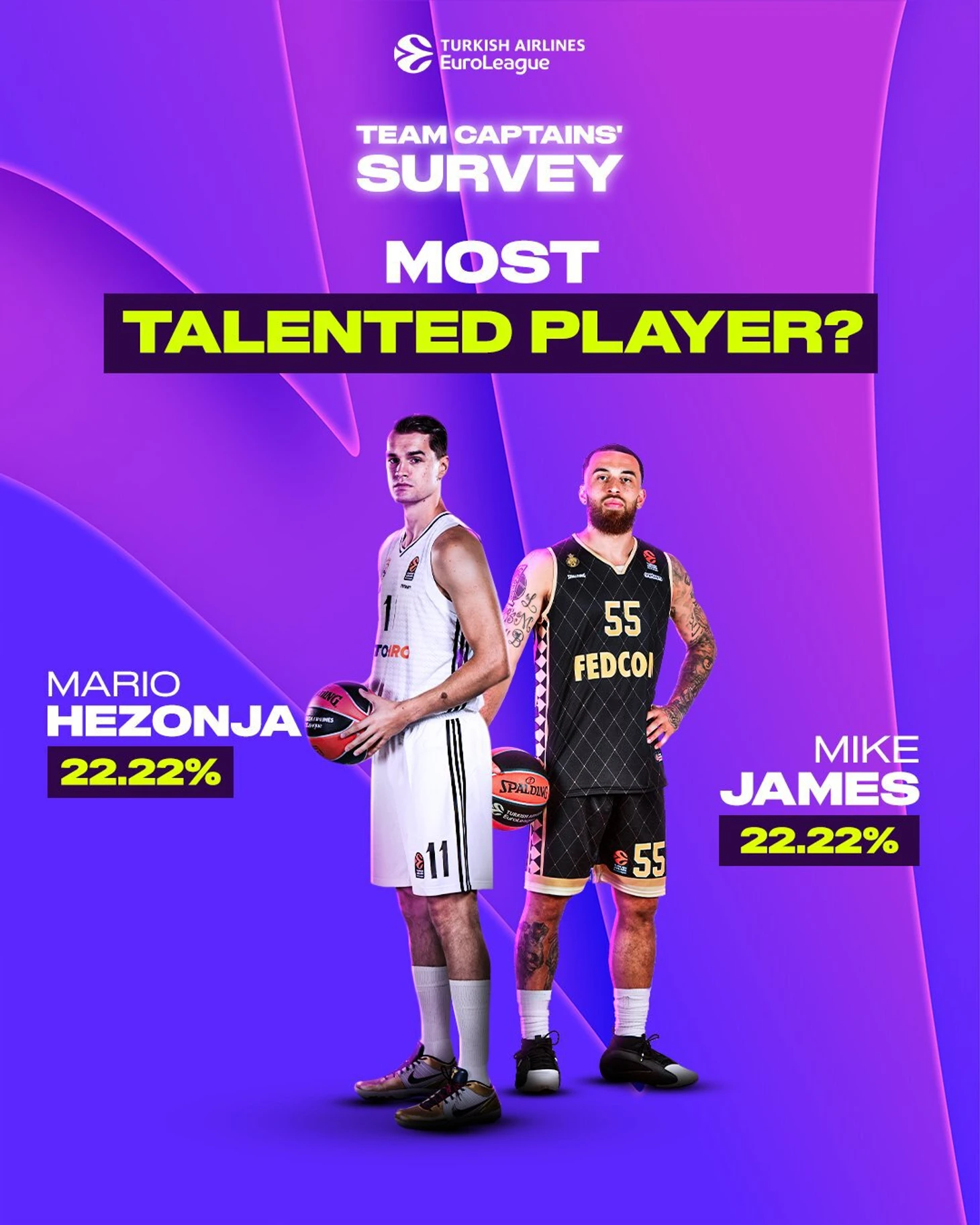 Майк Джеймс и Марио Хезоня разделили звание самого талантливого игрока Евролиги по мнению капитанов команд