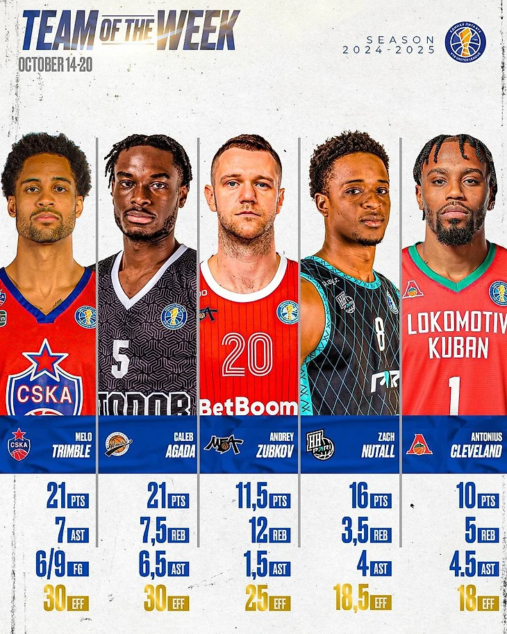 Тримбл, Агада, Зубков, Нуталл и Кливленд – в символической пятерке недели Лиги ВТБ
