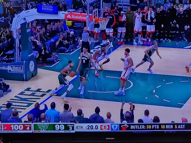 Согласно официальному отчету лиги о последних двух минутах матча, форвард «Бакс» Яннис Адетокумбо заступил в аут левой ногой, когда получил передачу от Брука Лорпеса за 20 секунд до конца встречи.