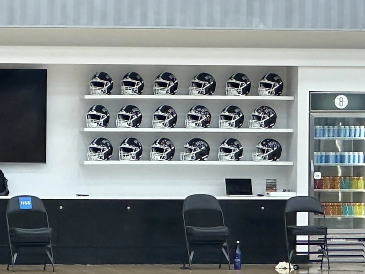 В тренировочном зале «Нетс» выставлены 18 футбольных шлемов для мотивации игроков.