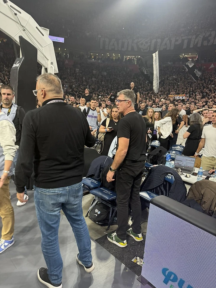 Болельщик «Партизана» выбежал на площадку и толкнул Георгиоса Барцокаса после матча в Белграде