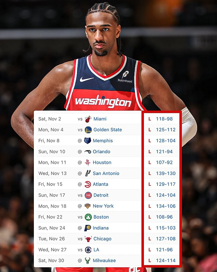 «Вашингтон» завершил ноябрь с результатом 0-14.