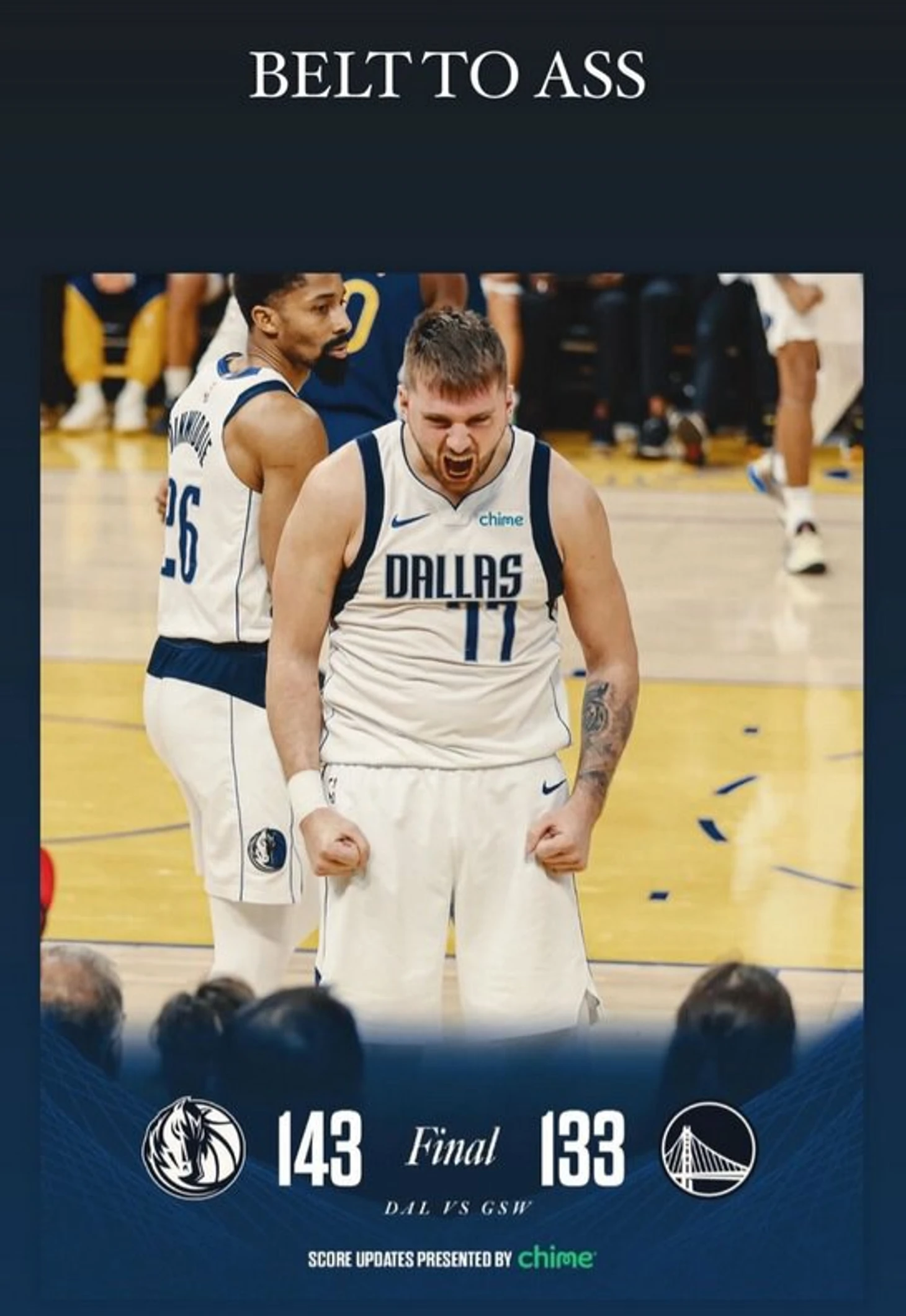 Форвард «Далласа» пожелал противнику «спокойной ночи» фирменным жестом Стефа Карри в концовке победного выездного матча (143:133).