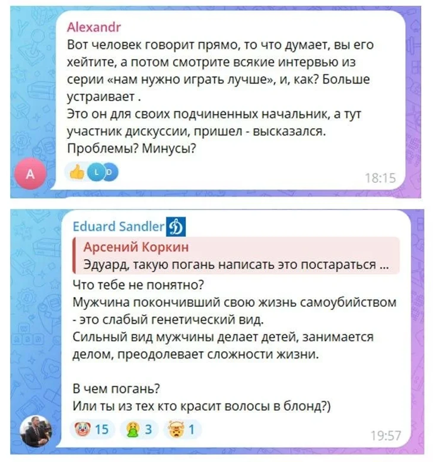 Эдуард Сандлер о грубых словах про Тимму: «Это была эмоциональная реакция. Меня сильно расстраивают такие примеры»