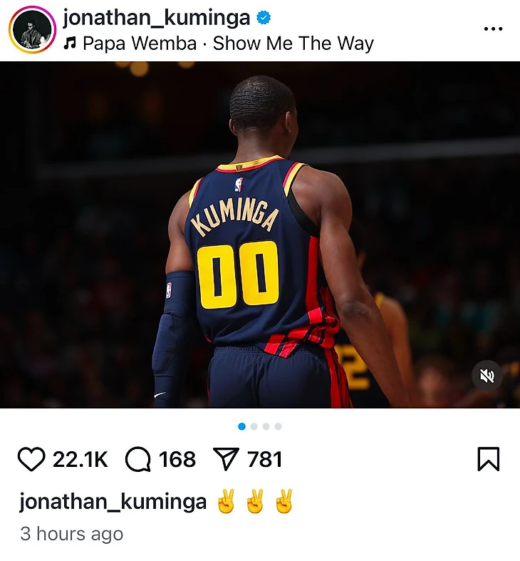 Форвард «Уорриорз» выложил в инстаграме серию фотографий с привязанной песней Papa Wemba «Укажи мне дорогу» и эмодзи «✌✌✌».