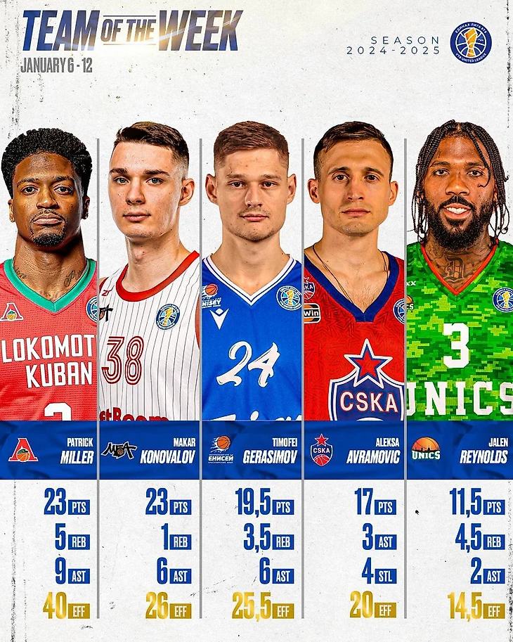 Миллер, Коновалов, Герасимов, Аврамович и Рейнольдс – в символической пятерке недели Единой лиги ВТБ