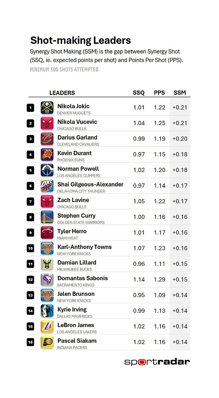 Йокич и Вучевич – лидеры по показателю «Synergy Shot Making».