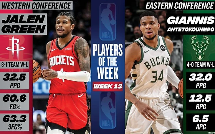 Ими стали защитник «Хьюстона» Джейлен Грин на Западе и форвард «Милуоки» Яннис Адетокумбо на Востоке.