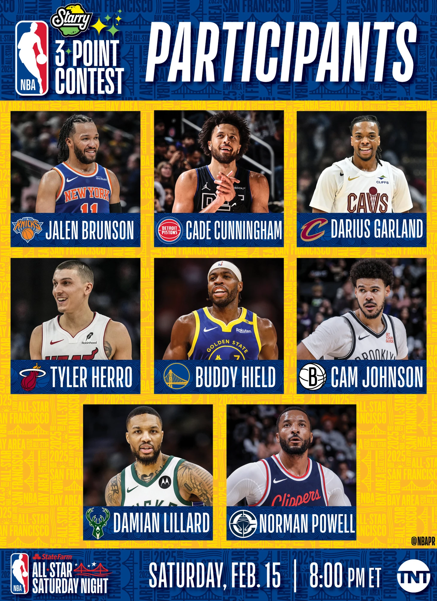 НБА объявила состав участников конкурса трехочковых бросков, который пройдет во время Уик-энда всех звезд 2025 года в Сан-Франциско.