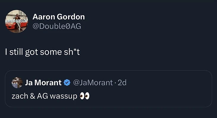 «У меня еще осталось кое-что», – написал форвард «Денвера» в ответ на пост Джа Морэнта («Мемфис»).