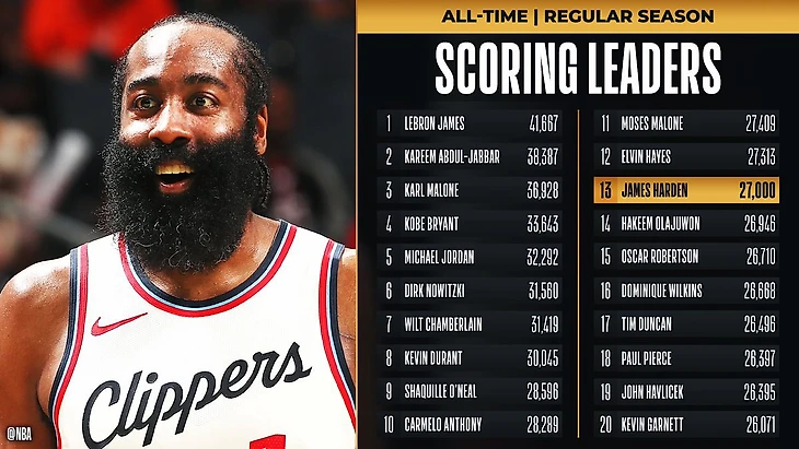 Защитник «Клипперс» в четверг по ходу встречи с «Бакс» 13-м в истории НБА добрался до отметки 27 тысяч очков за карьеру.
