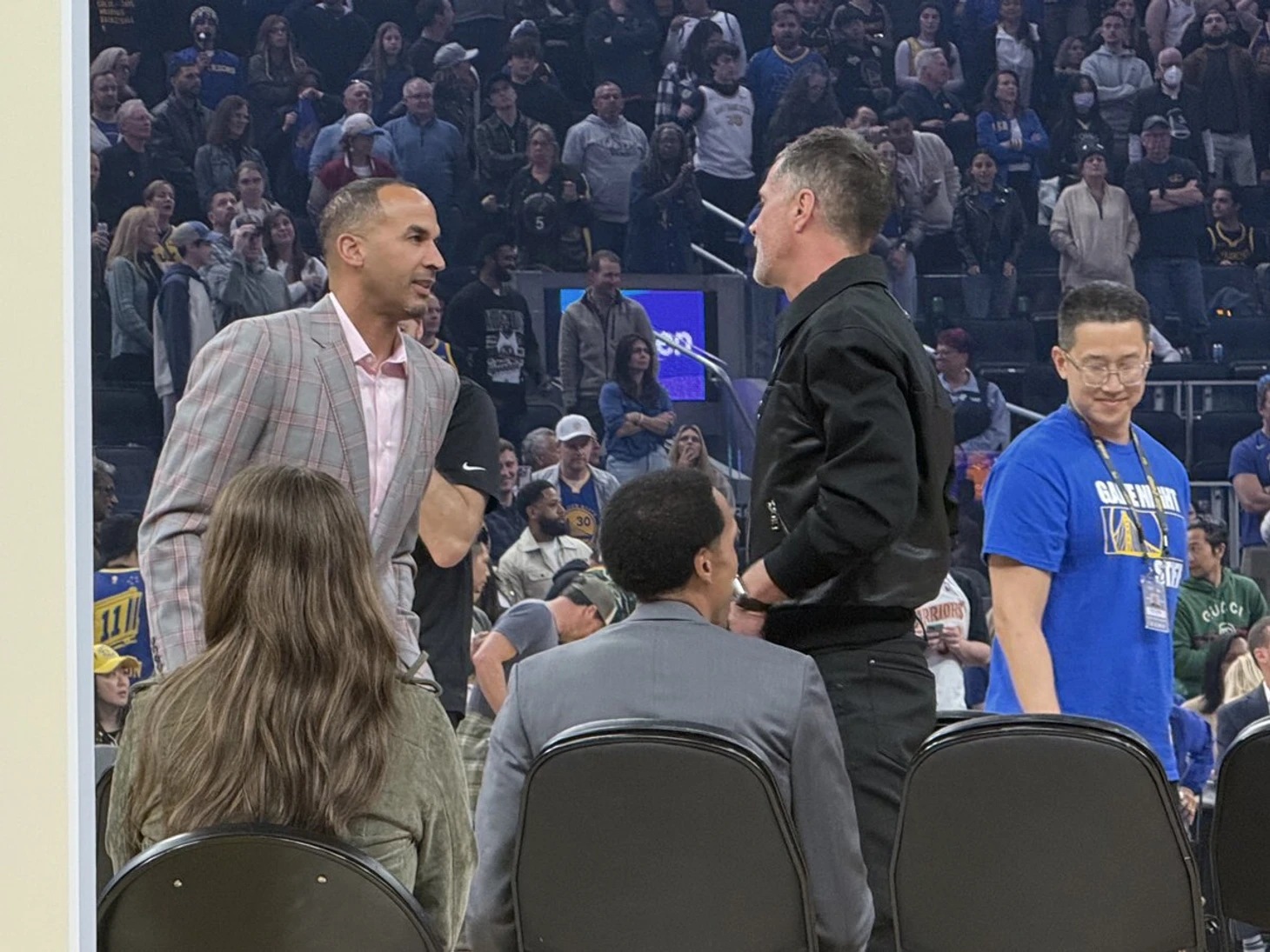 Нико Харрисон и Роб Пелинка снова встретились во время церемонии в честь Андре Игудалы на арене «Уорриорз» в день матча калифорнийской команды против «Далласа».
