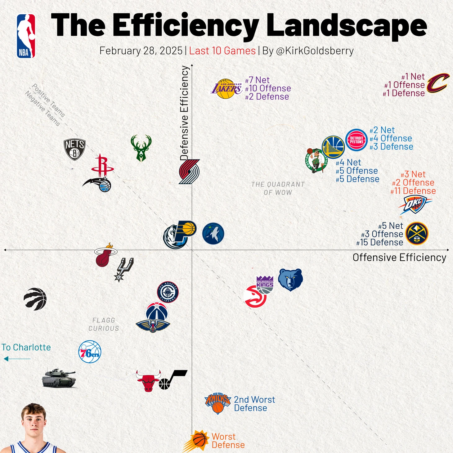 Аналитик Кирк Голдсберри выложил график эффективности клубов НБА.