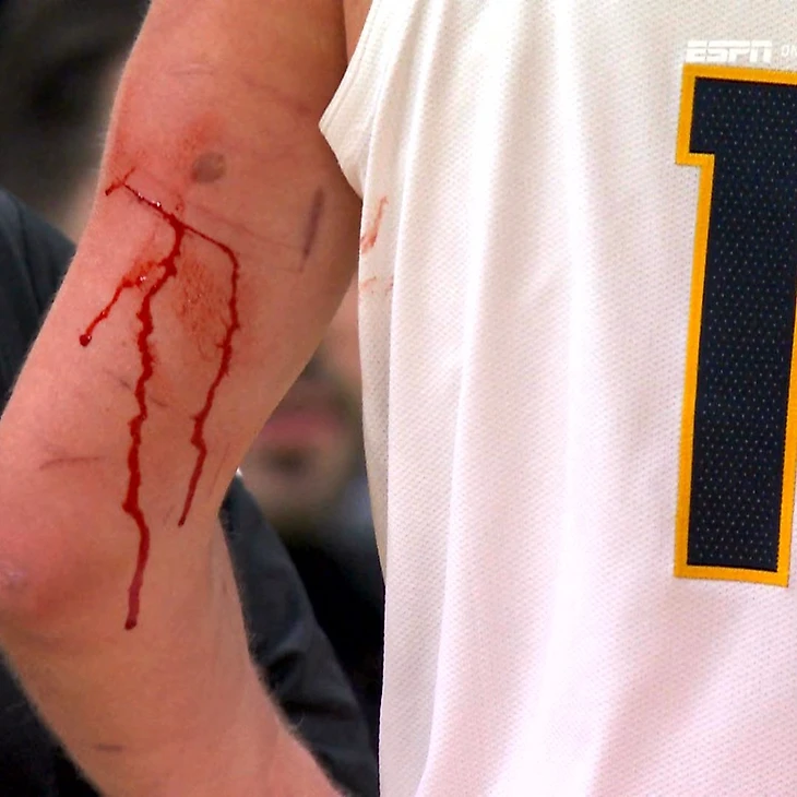 Центровой «Денвера» получил серьезный порез левой руки во время первой половины матча против «Бостона».