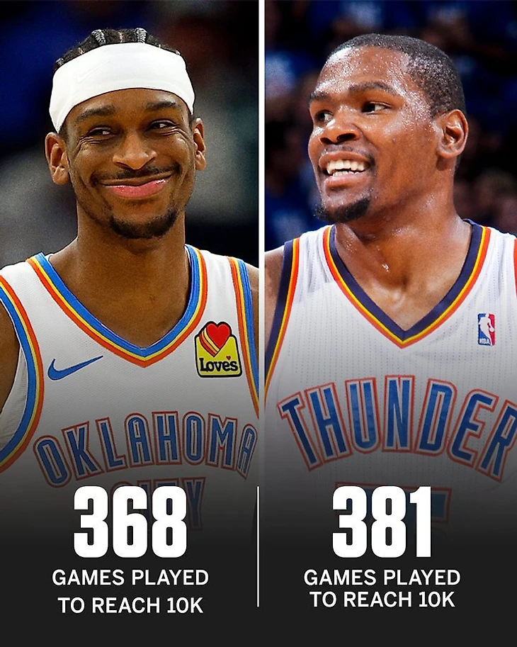 Шэй Гилджес-Александер обогнал Кевина Дюрэнта по скорости набора 10000 очков за «Оклахому»