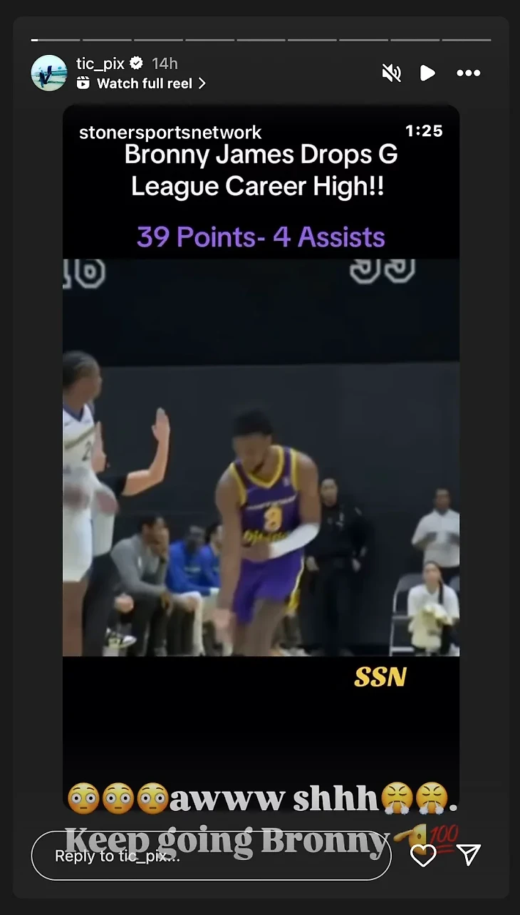 Член Зала славы отреагировал на великолепную игру сына Леброна Джеймса в G-лиге. Бронни набрал рекордные в карьере 39 очков, сделал 7 подборов, 4 передачи и 4 перехвата.