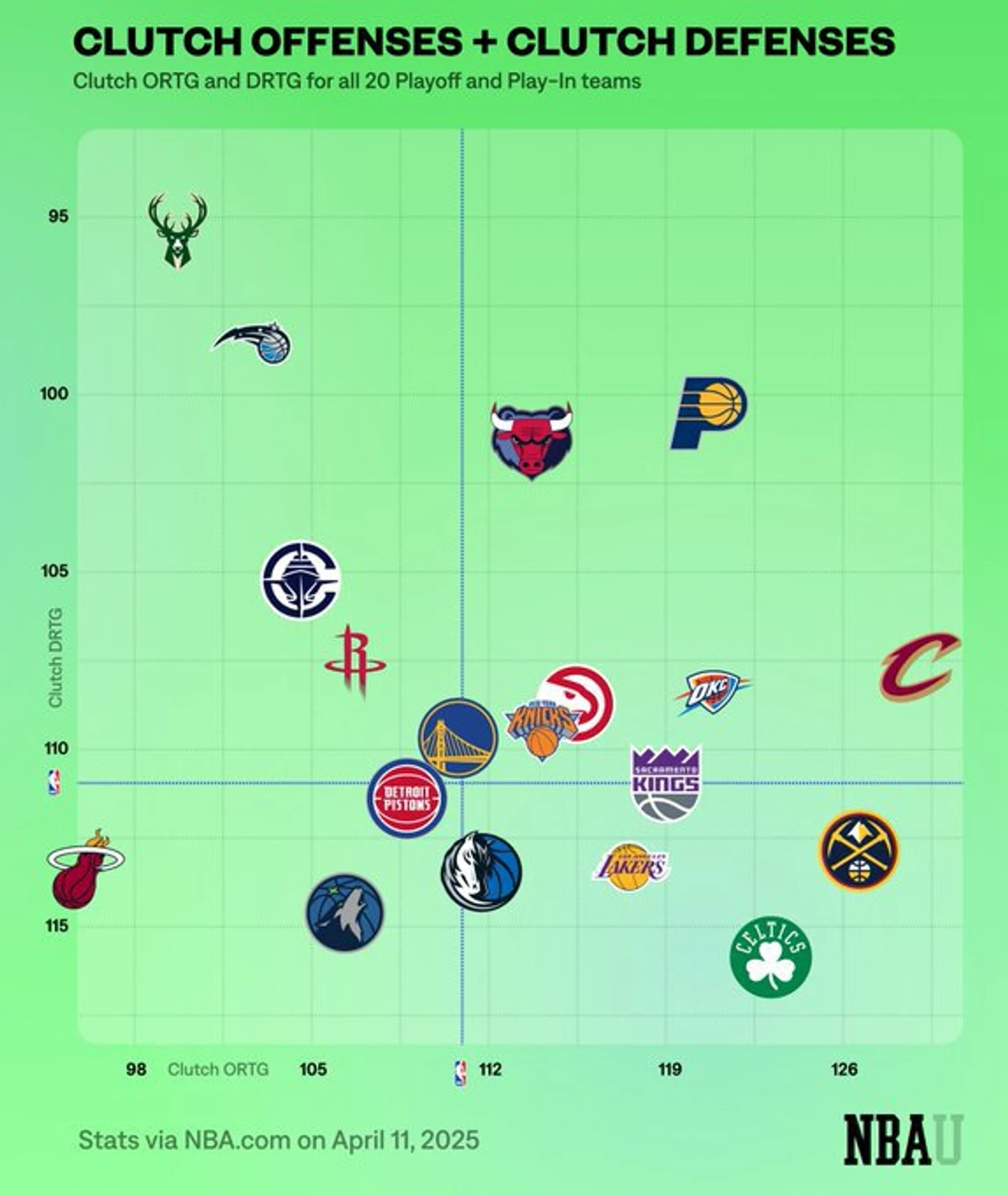 В этом сезоне команда показывает лучшее соотношение атакующего и защитного рейтингов в заключительные минуты при близком счете.