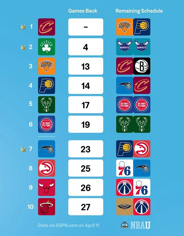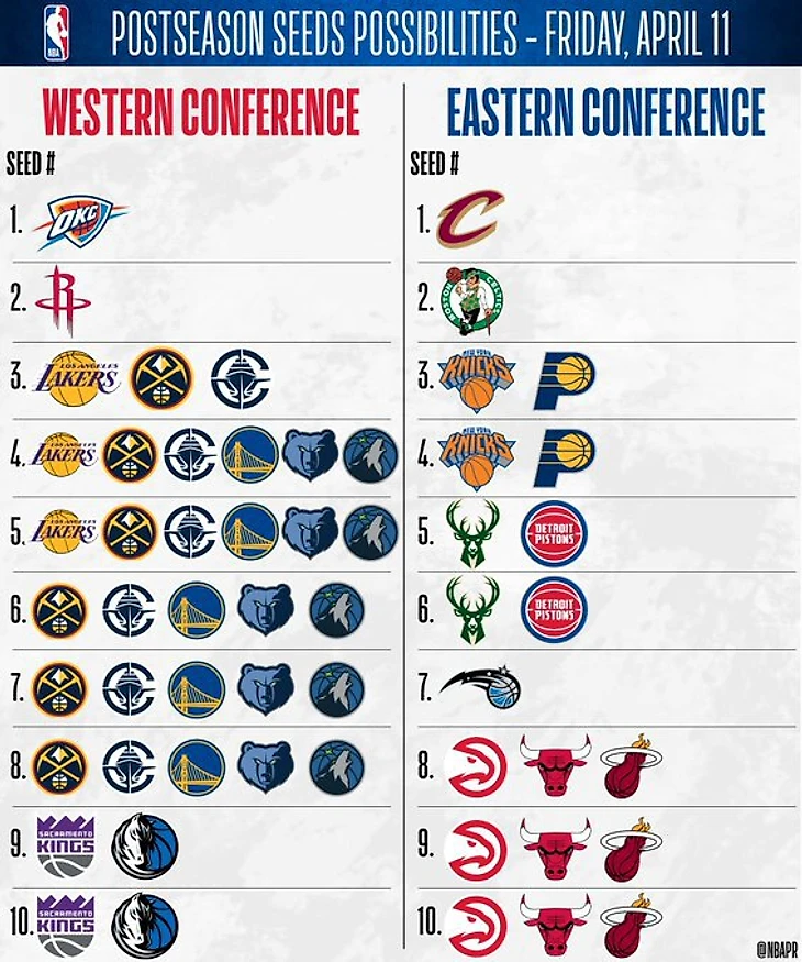 • «Оклахома» (1), «Хьюстон» (2), «Кливленд» (1), «Бостон» (2) и «Орландо» (7) определили свои места перед заключительными двумя игровыми днями НБА