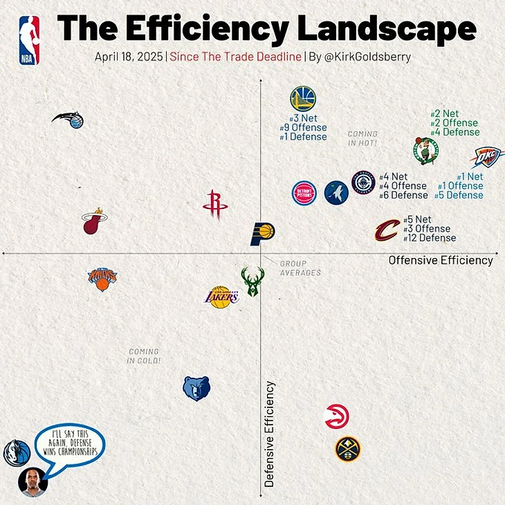 Аналитик Кирк Голдсберри выложил график эффективности клубов НБА.