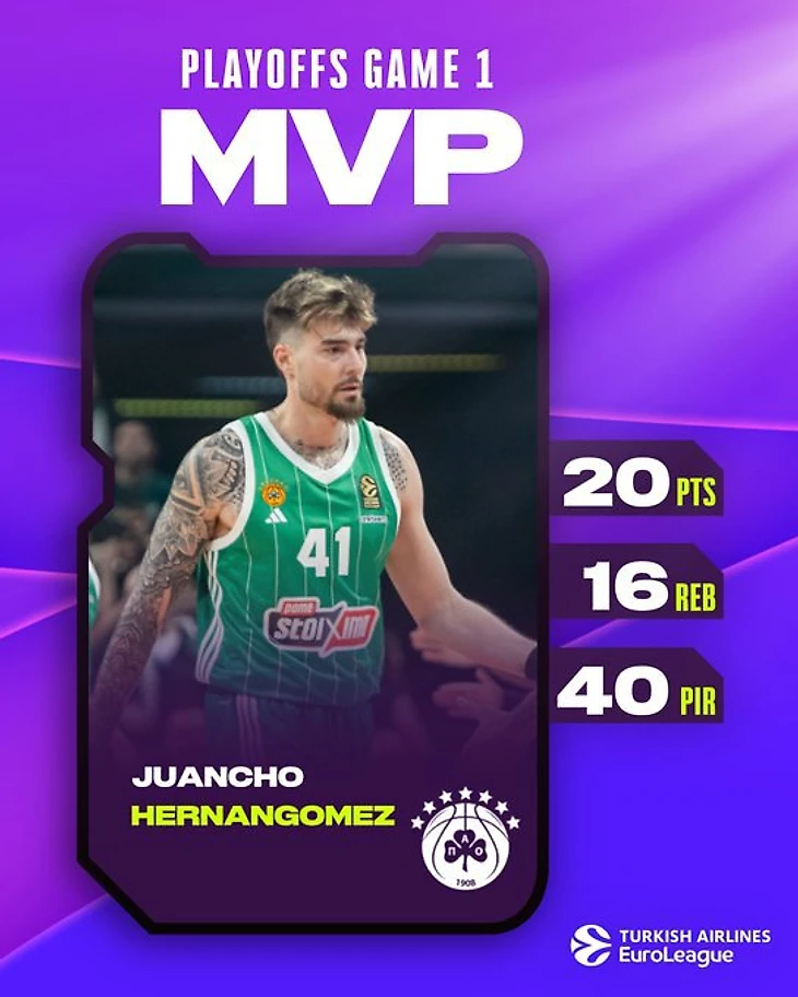 Форвард «Панатинаикоса» Хуан Эрнангомес признан MVP первых игр 1/4 плей-офф Евролиги