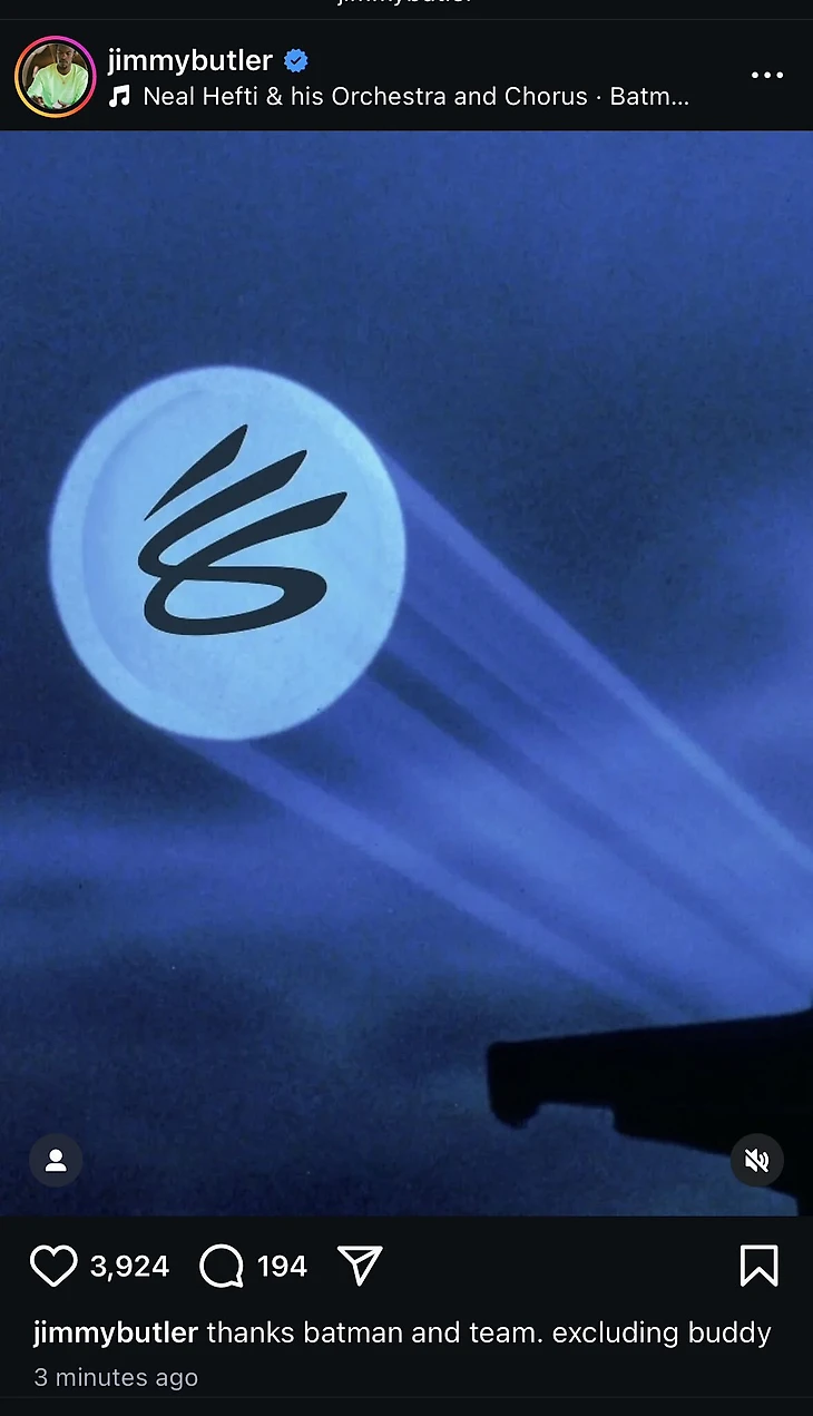 После 3-го матча серии с «Хьюстоном» Батлер написал сообщение на своей странице в соцсети: «Спасибо Бэтмену и команде. Кроме Бадди».
