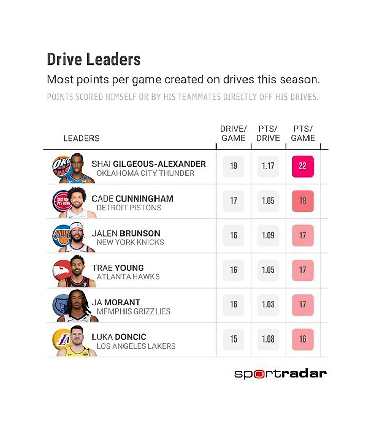 Шэй Гилджес-Александер – лидер по очкам, набранным за счет проходов. Кейд Каннингем – второй