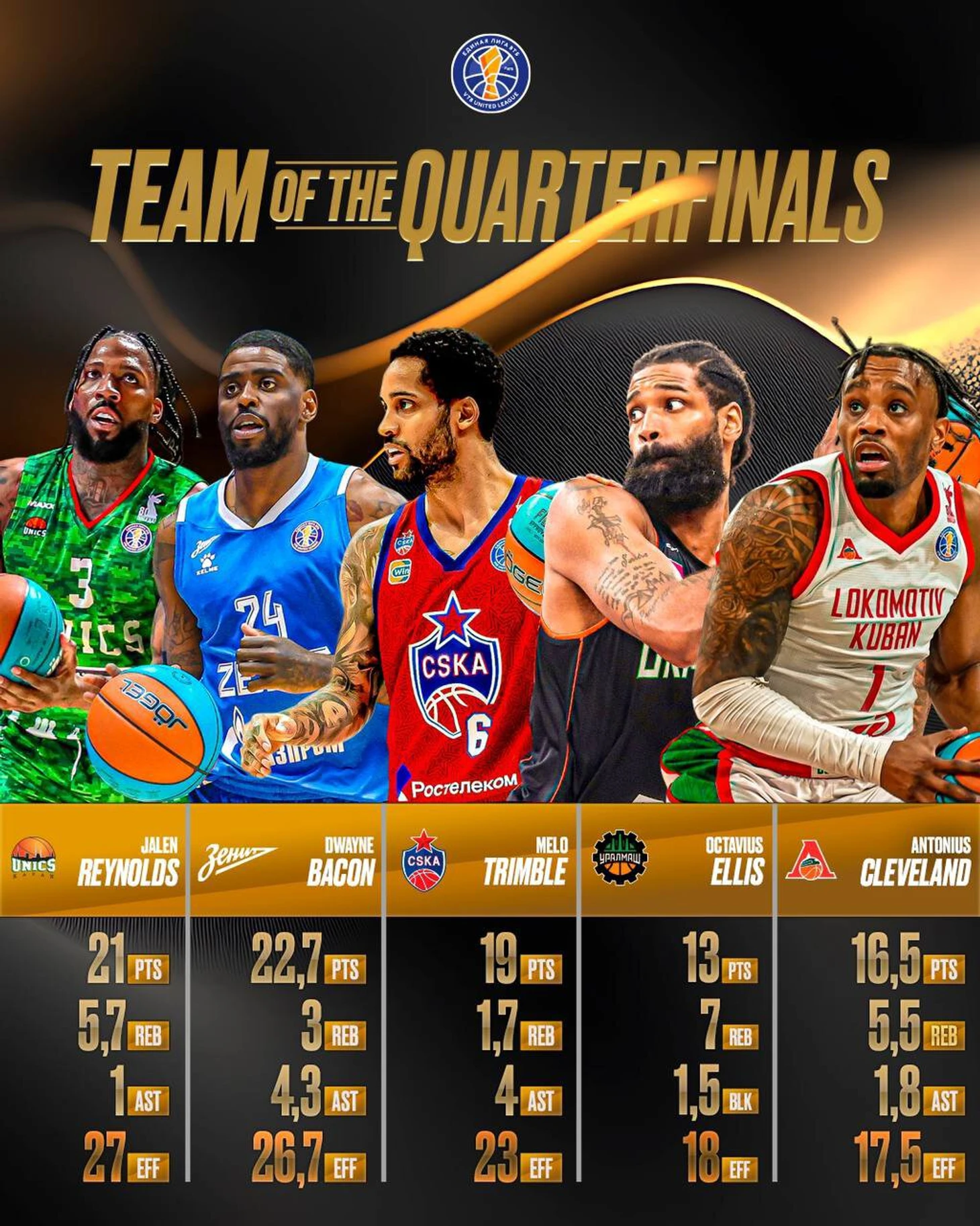 Рейнольдс, Бэйкон, Тримбл, Эллис и Кливленд – в символической пятерке 1/4 финала Единой лиги ВТБ
