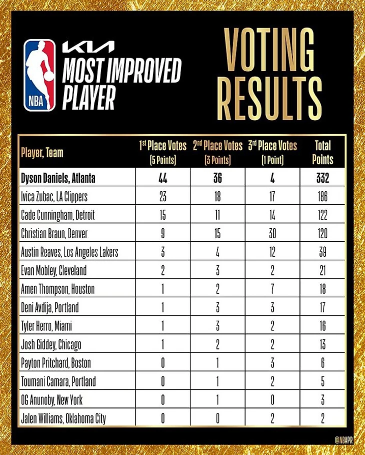 Дайсон Дэниэлс стал «Самым прогрессирующим игроком» сезона-2024/25 НБА