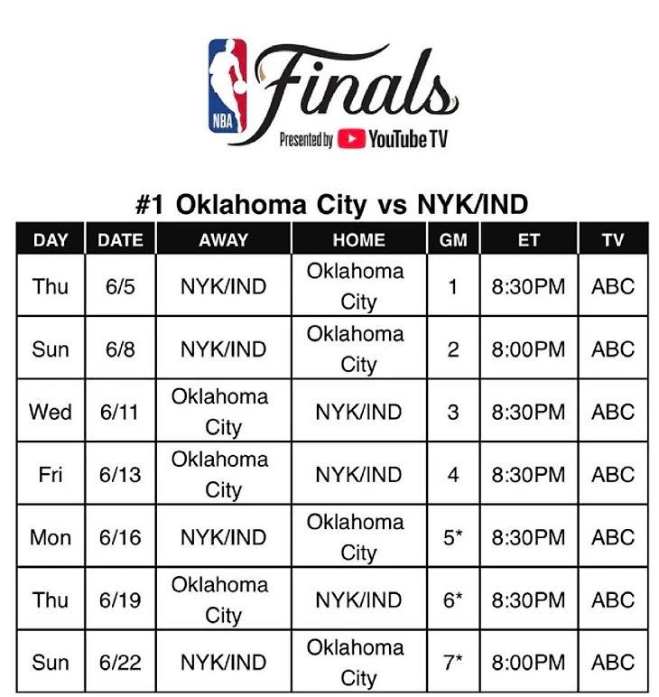 Первый матч финальной серии состоится в Оклахома-Сити 5 июня и будет показан на канале ABC.