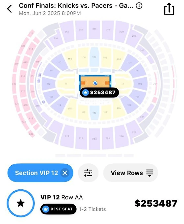 Стоимость ряда билетов на возможный 7-й матч «Никс» превышает четверть миллиона.