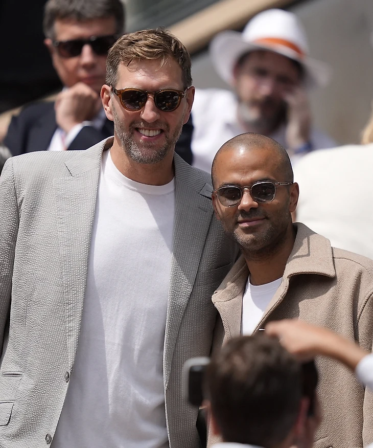 Чемпионы НБА немец Дирк Новицки и француз Тони Паркер посетили матч за титул «Ролан Гаррос» между Янником Синнером и Карлосом Алькарасом.