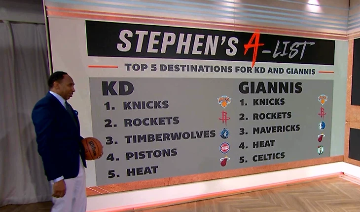 Пока что наибольший интерес представляет будущее форвардов Янниса Адетокумбо («Милуоки») и Кевина Дюрэнта («Финикс»), которые могут сменить команду в это межсезонье. Ведущий ESPN Стивен Эй Смит представил свой рейтинг предпочтительного перехода этих баскетболистов, проигнорировав фигурирующий в большинстве слухов «Сан-Антонио».