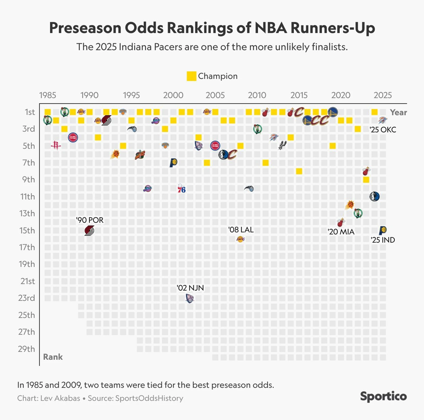 Финалист этого года «Индиана» до начала сезона занимала 15-е место в рейтинге. Это один из самых низких показателей за 40 лет.