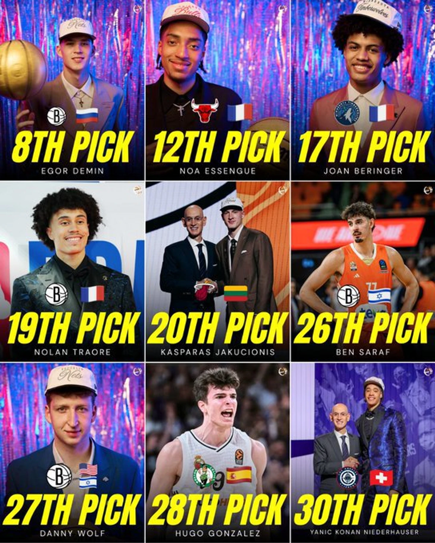 Всего в первом раунде драфта-2025 были выбраны 9 европейцев на позициях с 8-й (Демин) по 30-ю (Конан Нидерхаузер).