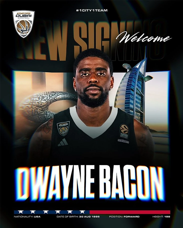 «Бэйкон» уже выступал в Евролиге за «Монако» и «Панатинаикос» и теперь поможет «Дубаю» в его дебютном турнире.