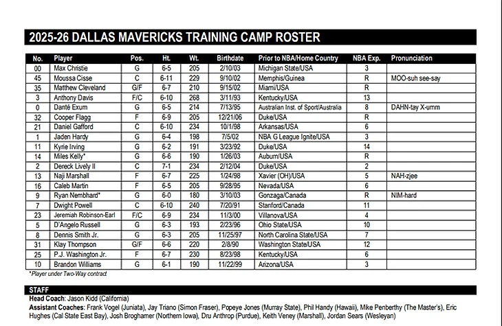 «Даллас» также представил полный состав игроков, приглашенных на тренировочный лагерь.