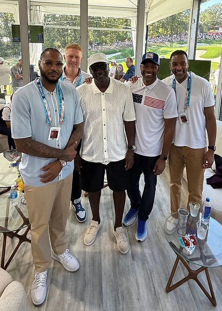 Джордан, Скалабрини, Энтони, Картер и Макгрэйди пересеклись на Кубке Райдера по гольфу и решили сделать совместное фото.
