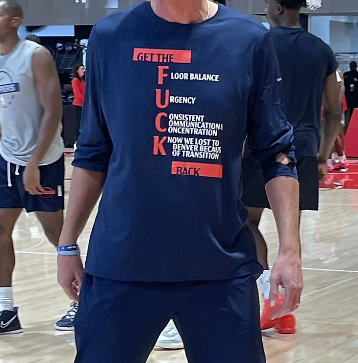 Тренеры «Клипперс» носят футболки с надписью «Get the F.U.C.K. back». Их придумал Джефф Ван Ганди для мотивации