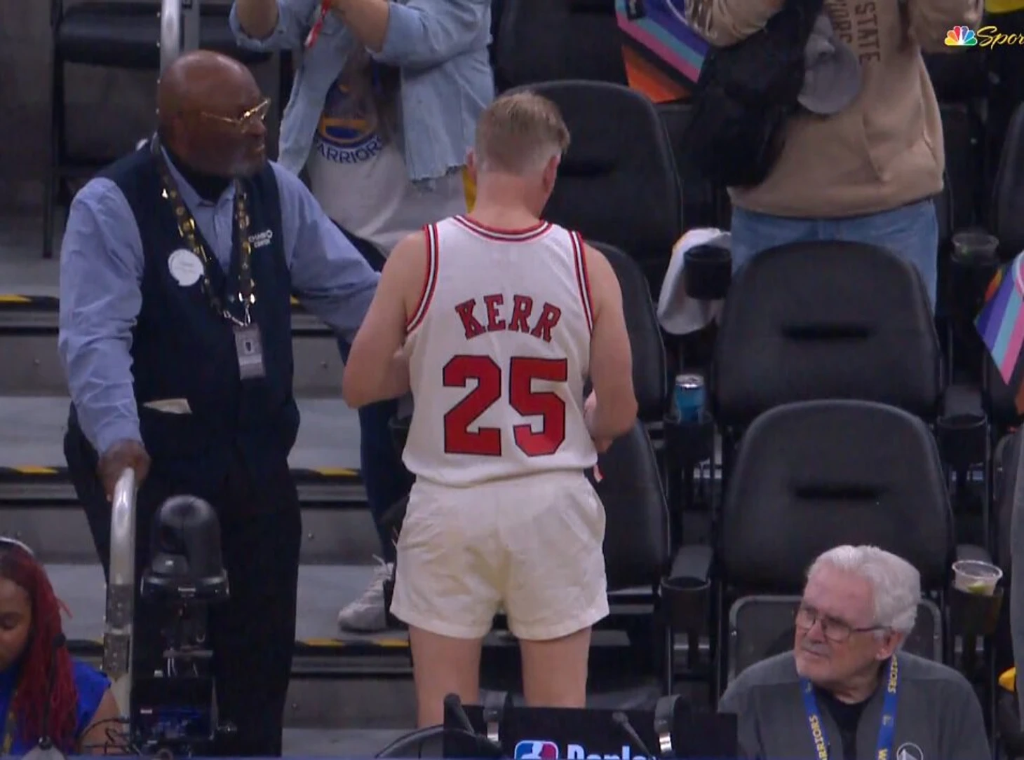 Похожий на главного тренера команды болельщик пришел на матч с «Клипперс» в старой майке Керра времен «Буллз» и вызвал оживление фанатов, пока не занял свое место.